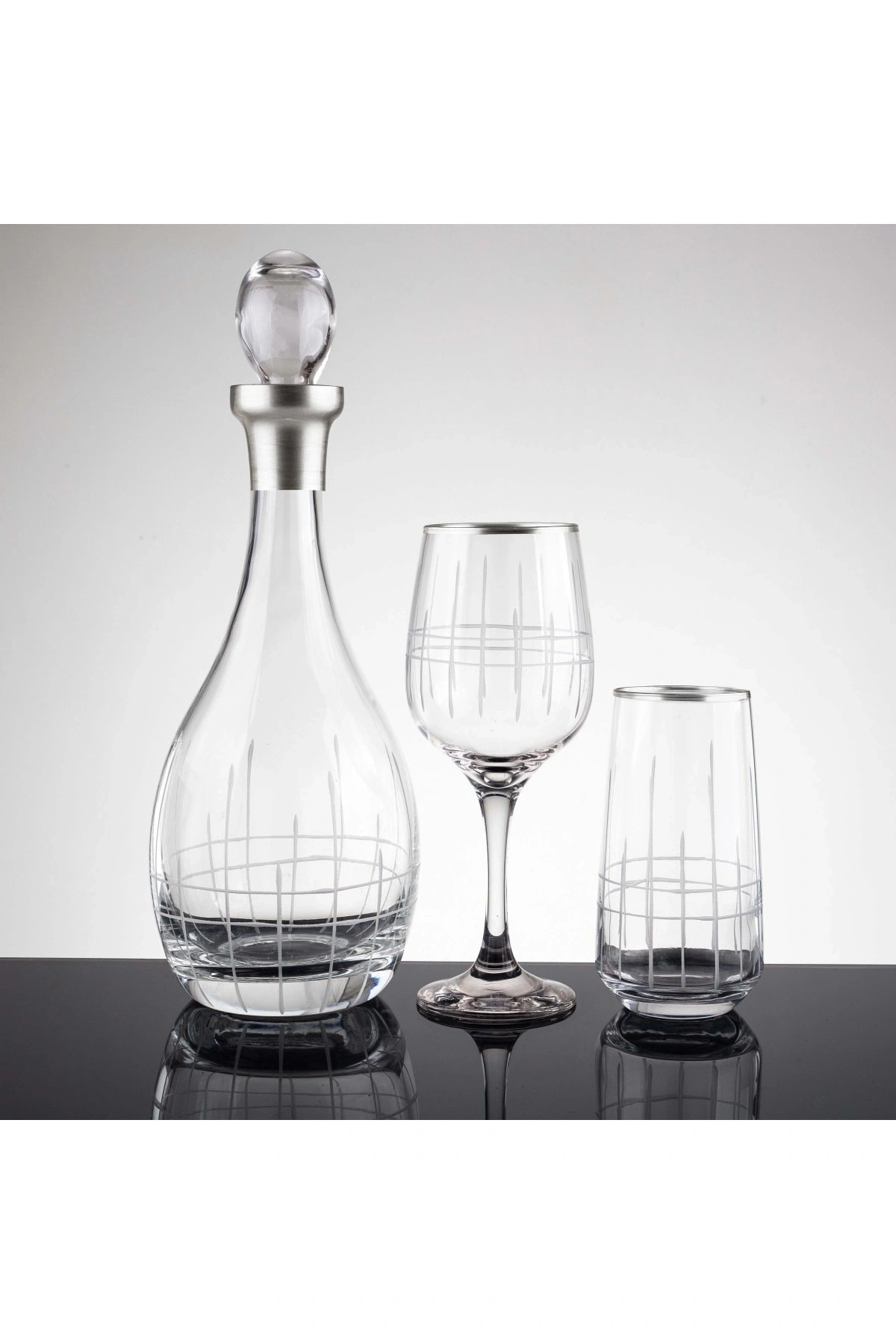 12 kişilik geniş kapasiteye sahip, 25 parça ekose gümüş su takımı ile misafirlerinize şıklığı ve konforu bir arada sunun; Cam materyali sayesinde suyunuzun tazeliğini uzun süre korurken, estetik görünümüyle sofralarınıza zarif bir dokunuş katın; Her bir bardakta yer alan ekose desenleriyle modern ve klasik dekorasyon tarzlarını birleştirerek sofra düzeninize özgün bir hava katar;