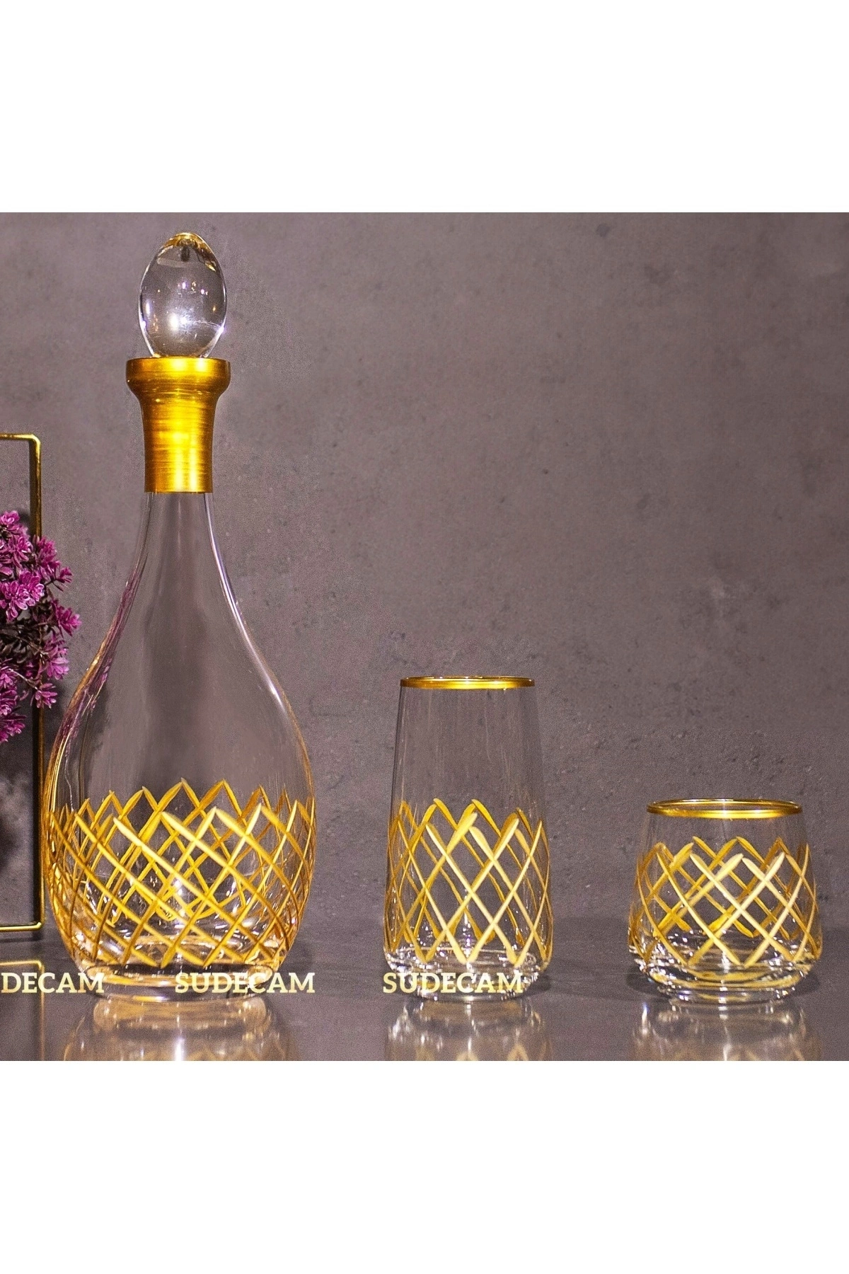 25 Parça 12 Kişilik Kare El Dekor Kesme Gold Cam Su Bardak Takımı,Meşrubat Bardağı Seti KARGO ESNASINDA OLUŞABİLECEK KIRIKLAR GARANTİMİZ ALTINDADIR 12 UZUN BARDAK 480cc 12 KISA MEŞRUBAT 345cc KARAF 1,5lt Şıklığı ve zarafeti bir araya getiren kristal kesme su takımımız, sofralarınıza lüks bir dokunuş katacak.; Her detayında el işçiliği bulunan kristal kesme su takımımız, özel anlarınızı daha da unutulmaz kılacak.; Her zaman parlayan ve dikkat çeken kristal kesme su takımımız, sofralarınızın baş tacı olacak
