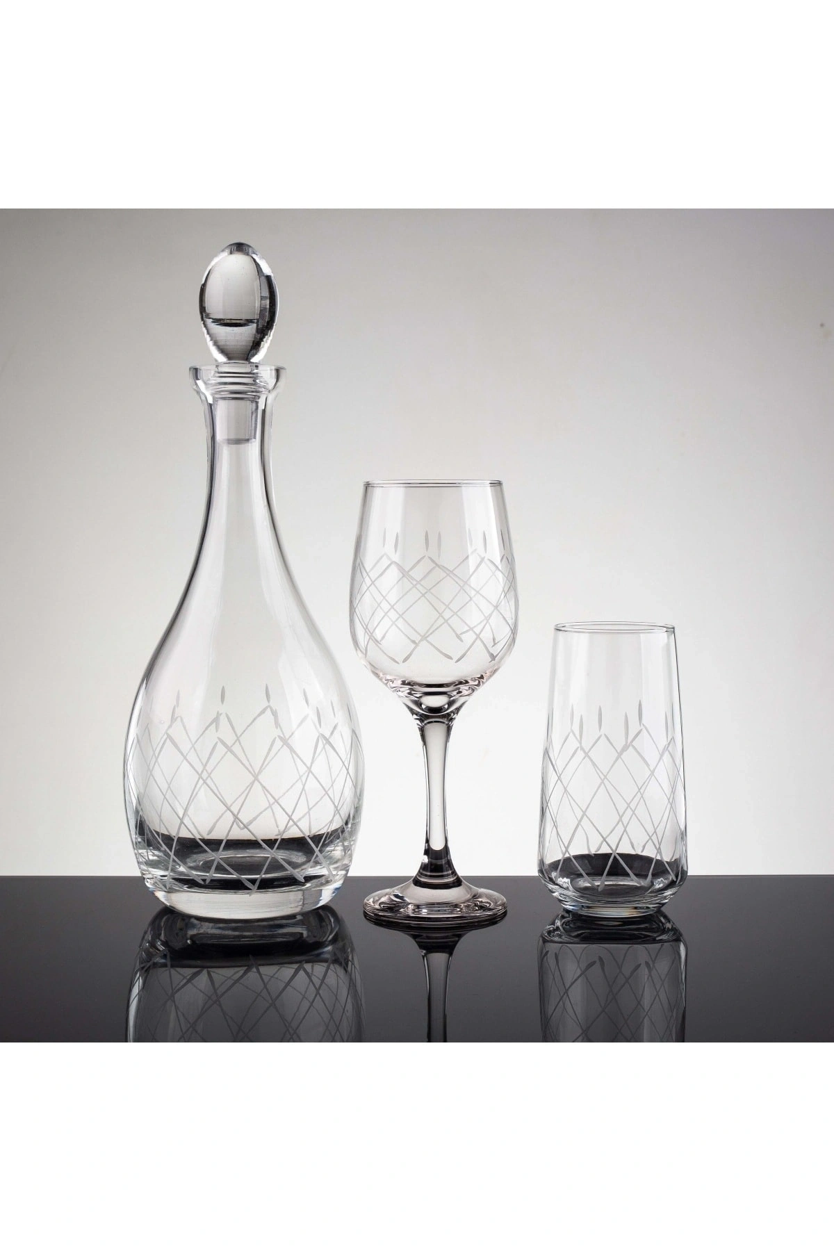 25 parça 12 kişilik kareçubuk el dekor kesme cam su takımı, şık ve modern bir sunum için idealdir; Cam malzemesi sayesinde dayanıklılık ve uzun ömürlü kullanım sunar; Su bardağı tasarımı ile soğuk içeceklerinizi keyifle yudumlayabilirsiniz;