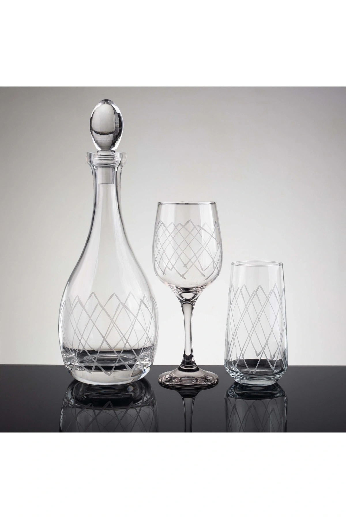 12 kişilik geniş kapasiteye sahip, 25 parçadan oluşan kareçubuk platin el dekor kesme cam su takımı, büyük davetlerinizde ve özel günlerinizde şıklığı ve zarafeti bir arada sunar; Yüksek kaliteli cam materyali sayesinde, suyunuzun tazeliğini uzun süre korur ve içeceğinizin tadını daha uzun süre muhafaza eder; Kareçubuk tasarımıyla modern ve estetik bir görünüm sergileyen bu bardaklar, sofralarınıza sofistike bir dokunuş katar; El dekor kesme cam teknolojisi ile üretilen bu su takımı, her bir bardağın benzersiz ve özgün bir desene sahip olmasını sağlar;