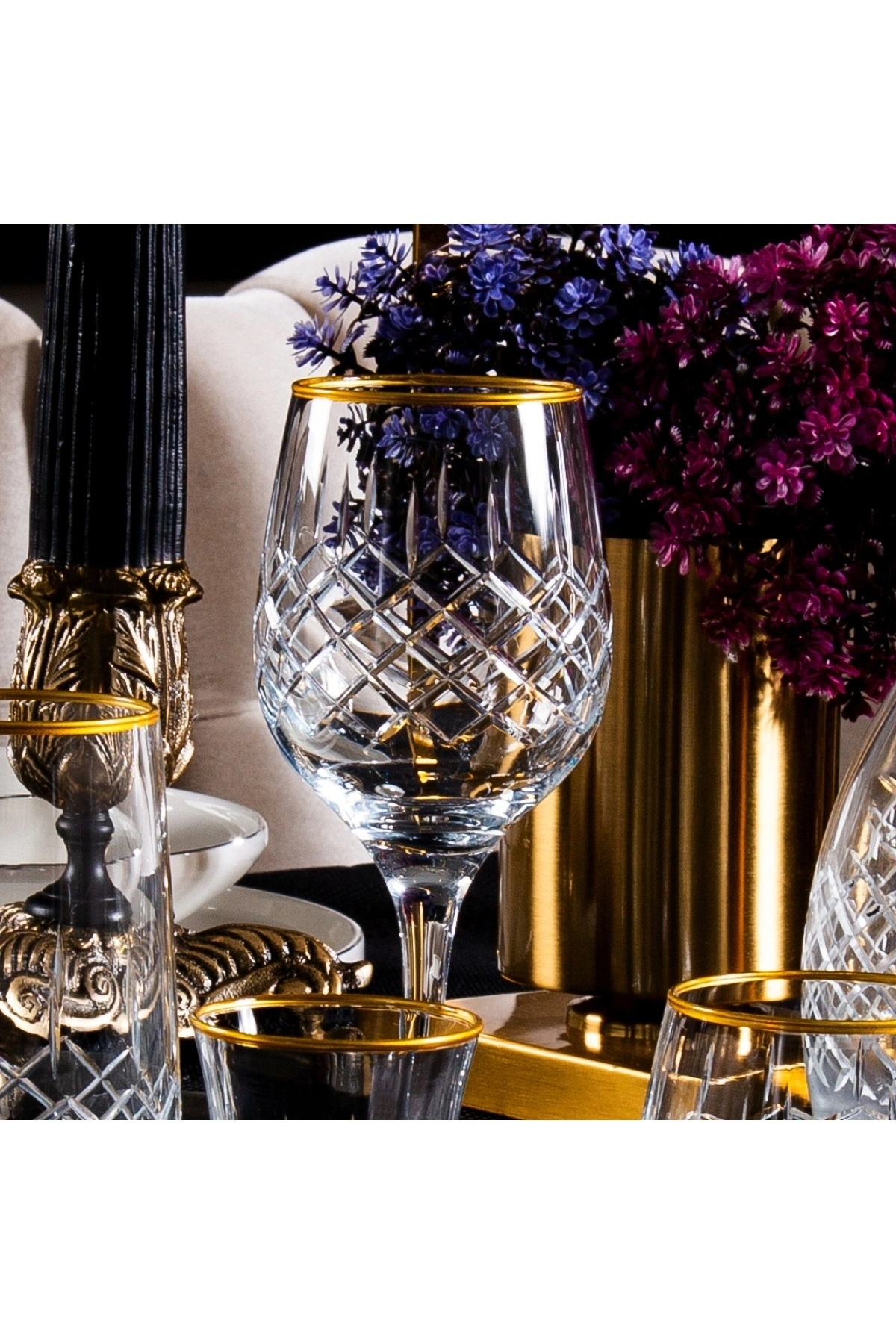 - 6 kişilik geniş kapasiteye sahip, her türlü sosyal etkinlikte rahatlıkla kullanılabilen 31 parça su bardağı seti; - Şık ve modern tasarımıyla dikkat çeken, parlak gold detayları ile sofralarınıza zarif bir dokunuş katan cam bardaklar; - Yüksek kaliteli cam materyali sayesinde uzun ömürlü kullanım ve dayanıklılık sunar; - El dekorasyonu ile her bir bardakta benzersizlik ve estetik bir görünüm elde edilir, bu da sofralarınıza kişisel bir dokunuş katmanızı sağlar; - Kesme cam özelliği ile içeceklerinizi kolayca servis edebilir, misafirlerinizle keyifli sohbetler yapabilirsiniz;