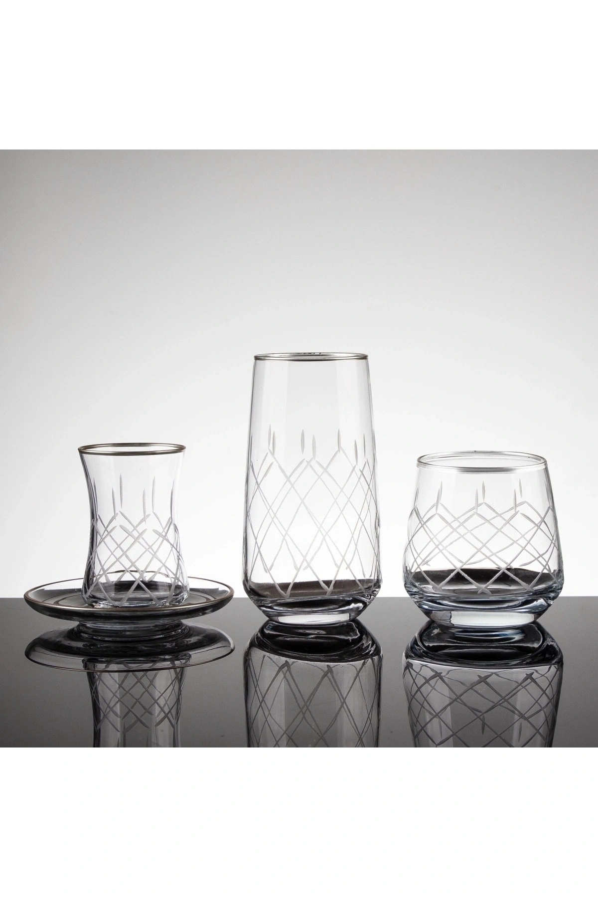 6 kişilik geniş kapasiteye sahip, her türlü davet ve toplantınızda rahatlıkla kullanabileceğiniz kareçubuk platin el dekor kesme cam su takımı; Şık ve modern tasarımıyla dikkat çeken bu bardaklar, sofralarınıza zarif bir dokunuş katıyor; Yüksek kaliteli cam materyali sayesinde uzun ömürlü kullanım sunar ve dayanıklılığı ile ön plana çıkar; El dekor kesim detayları ile estetik görünümün yanı sıra, içeceklerinizi daha şık bir şekilde sunmanızı sağlar;