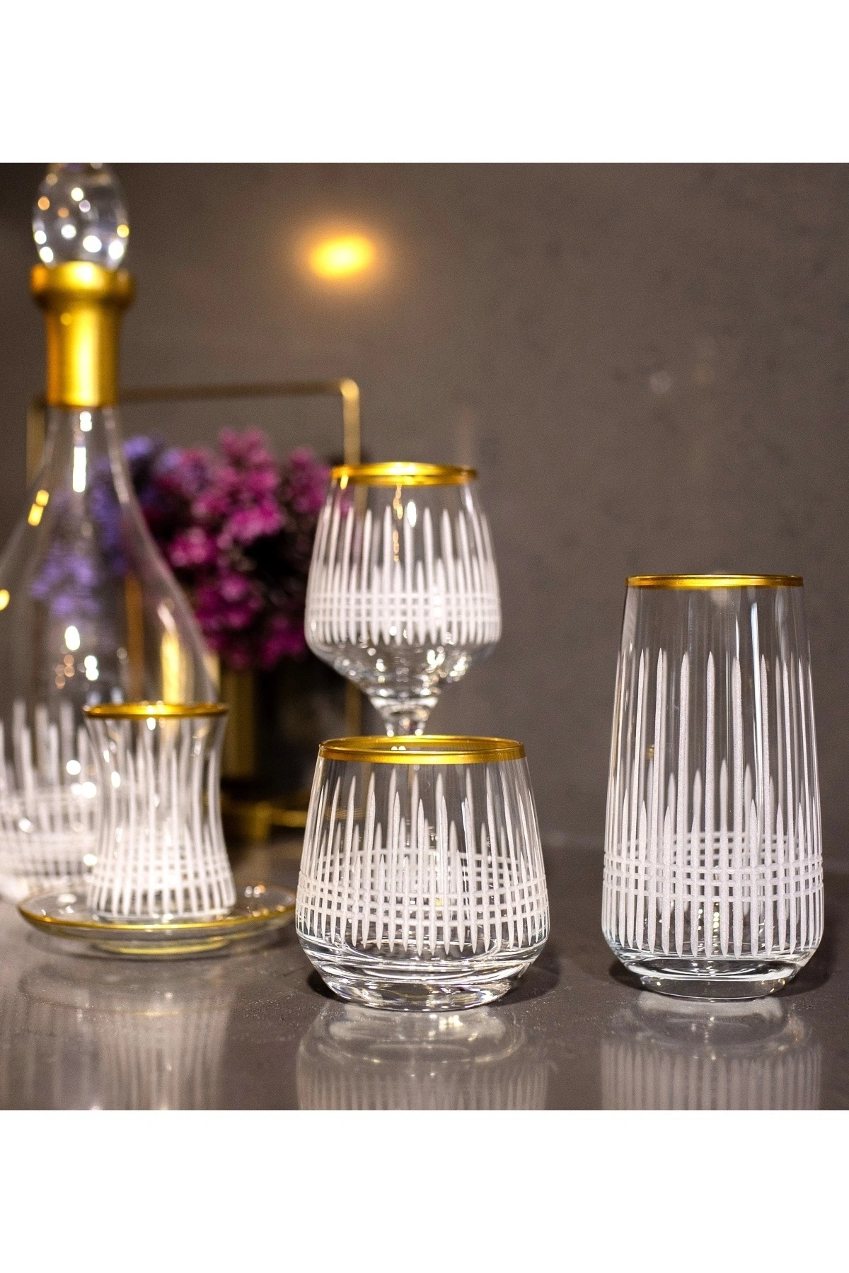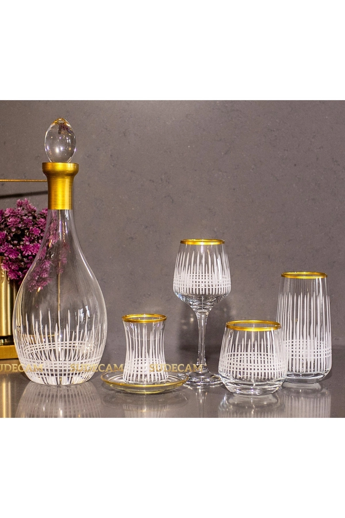 31 Parça 6 Kişilik Üççember Gold El Dekor Kesme Cam Su Bardak Takımı,Meşrubat Bardağı Seti KARGO ESNASINDA OLUŞABİLECEK KIRIKLAR GARANTİMİZ ALTINDADIR 6 KADEH 295cc 6 UZUN BARDAK 480cc 6 KISA MEŞRUBAT 345cc 6 ÇAY BARDAK 155cc 6 ÇAY TABAK KARAF 1,5lt Şıklığı ve zarafeti bir araya getiren kristal kesme su takımımız, sofralarınıza lüks bir dokunuş katacak.; Her detayında el işçiliği bulunan kristal kesme su takımımız, özel anlarınızı daha da unutulmaz kılacak.; Her zaman parlayan ve dikkat çeken kristal kesme su takımımız, sofralarınızın baş tacı olacak