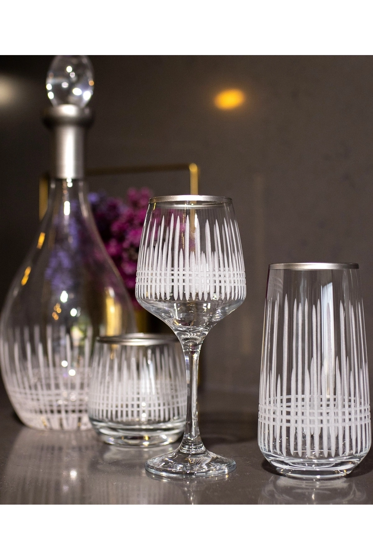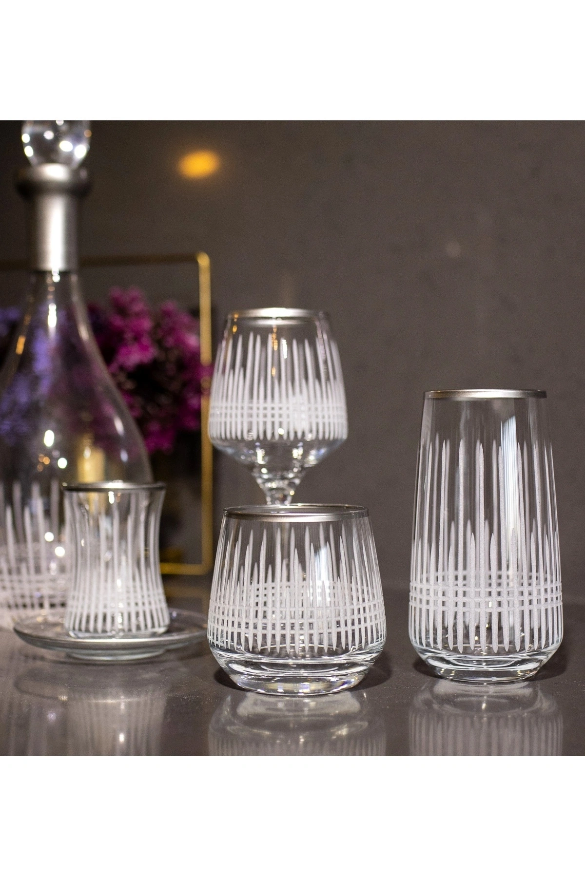 37 Parça 12 Kişilik Üççember Gümüş El Dekor Kesme Cam Su Bardak Takımı,Meşrubat Bardağı Seti KARGO ESNASINDA OLUŞABİLECEK KIRIKLAR GARANTİMİZ ALTINDADIR 12 KADEH 295cc 12 UZUN BARDAK 480cc 12 KISA MEŞRUBAT 345cc KARAF 1,5lt Şıklığı ve zarafeti bir araya getiren kristal kesme su takımımız, sofralarınıza lüks bir dokunuş katacak.; Her detayında el işçiliği bulunan kristal kesme su takımımız, özel anlarınızı daha da unutulmaz kılacak.; Her zaman parlayan ve dikkat çeken kristal kesme su takımımız, sofralarınızın baş tacı olacak