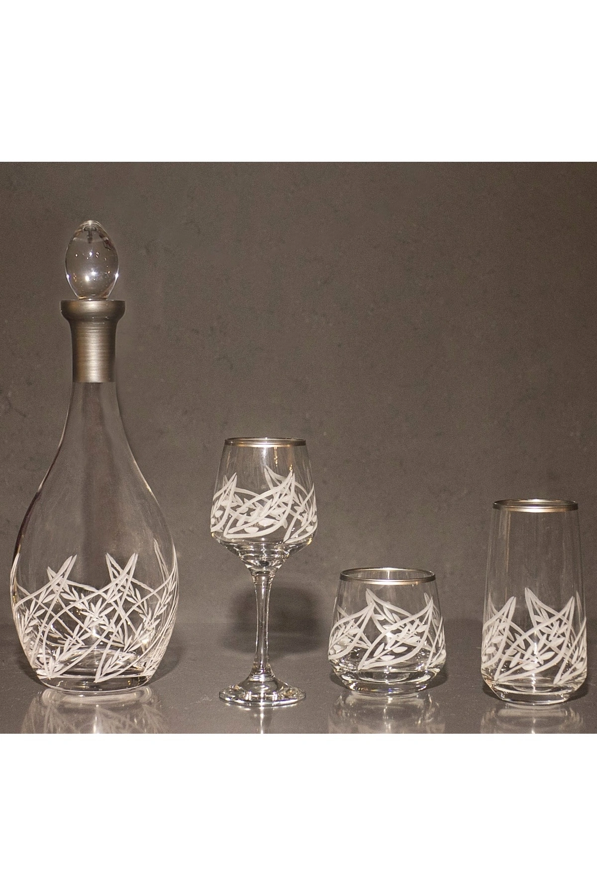 37 Parça 12 Kişilik Yaprak El Dekor Kesme Gümüş Cam Su Bardak Takımı,Meşrubat Bardağı Seti KARGO ESNASINDA OLUŞABİLECEK KIRIKLAR GARANTİMİZ ALTINDADIR 12 KADEH 295cc 12 UZUN BARDAK 480cc 12 KISA MEŞRUBAT 345cc KARAF 1,5lt Şıklığı ve zarafeti bir araya getiren kristal kesme su takımımız, sofralarınıza lüks bir dokunuş katacak.; Her detayında el işçiliği bulunan kristal kesme su takımımız, özel anlarınızı daha da unutulmaz kılacak.; Her zaman parlayan ve dikkat çeken kristal kesme su takımımız, sofralarınızın baş tacı olacak