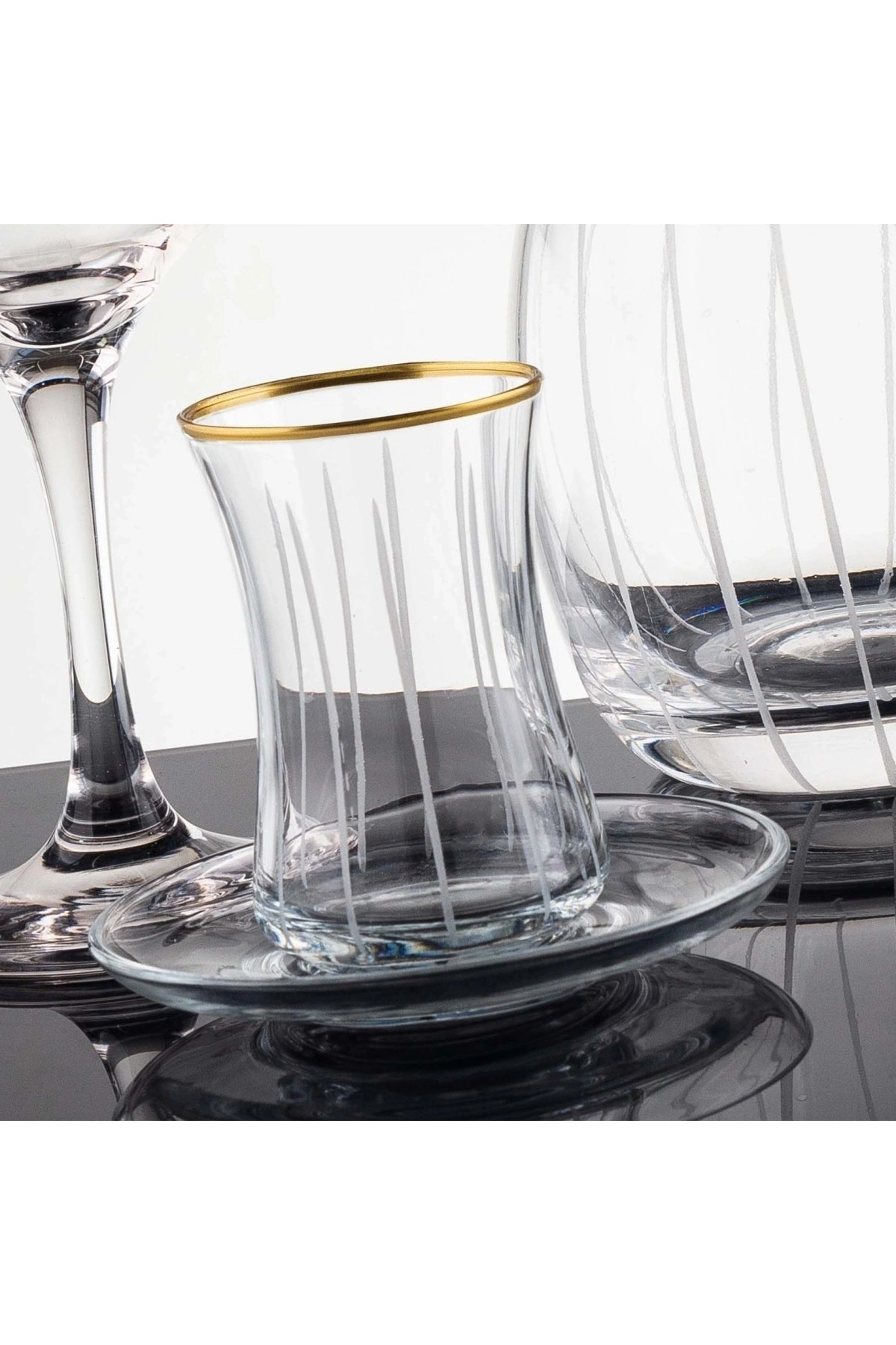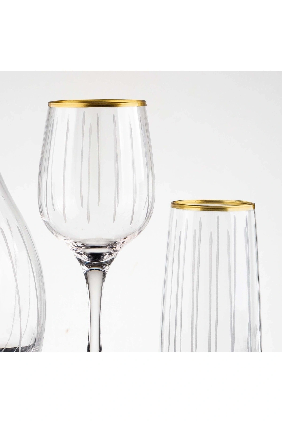 49 Parça 12 Kişilik Çubuk Gold El Dekor Kesme Cam Su Takımı