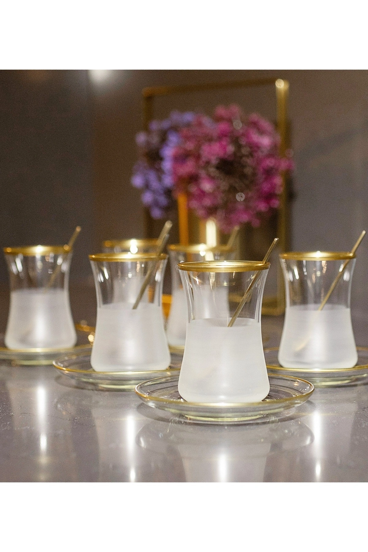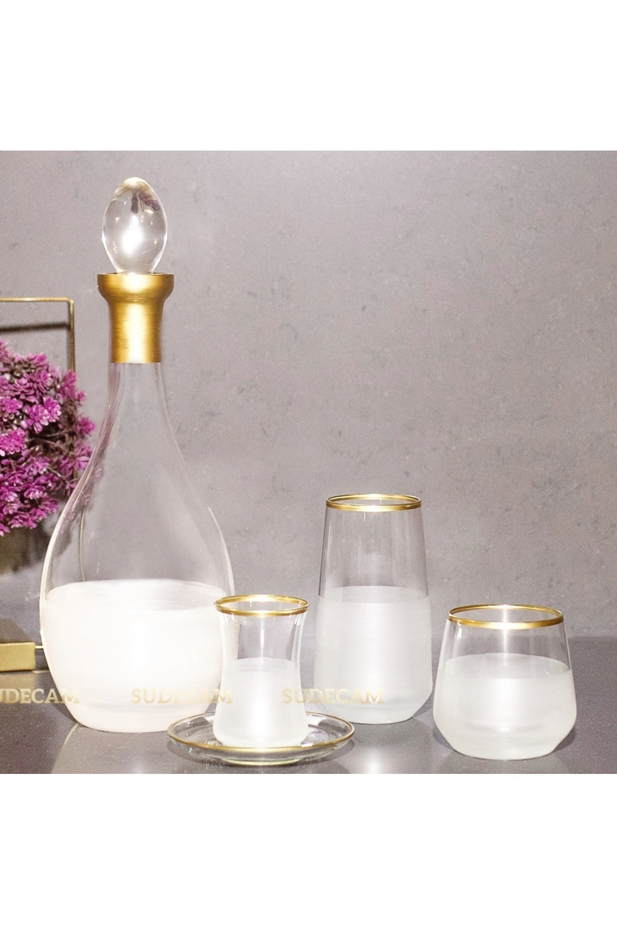 12 kişilik geniş kapasiteye sahip, 49 parçadan oluşan Nish Gold cam su bardak takımı, misafirlerinize şık bir sunum imkanı sunar; Yüksek kaliteli cam malzemesi sayesinde uzun ömürlü kullanım ve dayanıklılık sağlar; Her bir bardakta zarif bir parlaklık ve estetik bir görünüm elde etmek için altın rengi detaylar bulunur; Meşrubatlarınızı ve içeceklerinizi şıklıkla servis edebileceğiniz bu set, sofralarınıza modern bir dokunuş katar;