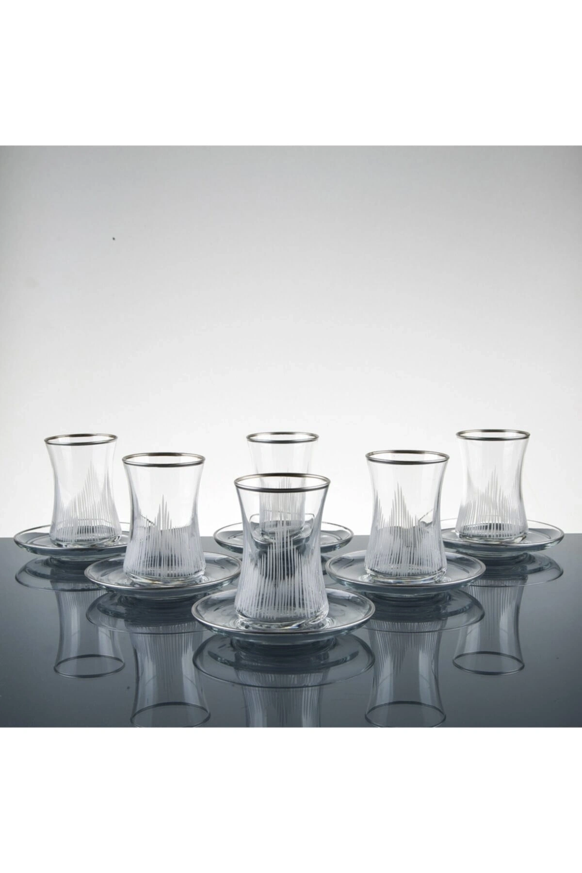 6 kişilik set içeriğinde yer alan 12 adet gümüş renkli cam çay bardağı, şık ve zarif bir sunum sağlar.; Her çay severin beğenisini kazanacak şekilde tasarlanmış bu set, gümüş rengi ile modern ve sofistike bir görünüm sunar.; Yüksek kaliteli camdan üretilmiş olup, dayanıklılığı ve estetiği bir arada barındırarak uzun süreli kullanımlarda bile formunu korur.; Gümüş renkli cam yapısı ile geleneksel çay saatlerinin vazgeçilmezi olan bu set, misafirlerinizin dikkatini çekecek ve lezzetli çay keyfinizi daha da güzelleştirecektir.; Her parça ayrı ayrı ambalajlı olarak gönderilir, böylece temizliği ve saklaması kolaydır; böylece misafirlerinize gösterişli bir çay servisi yapabilirsiniz.;
