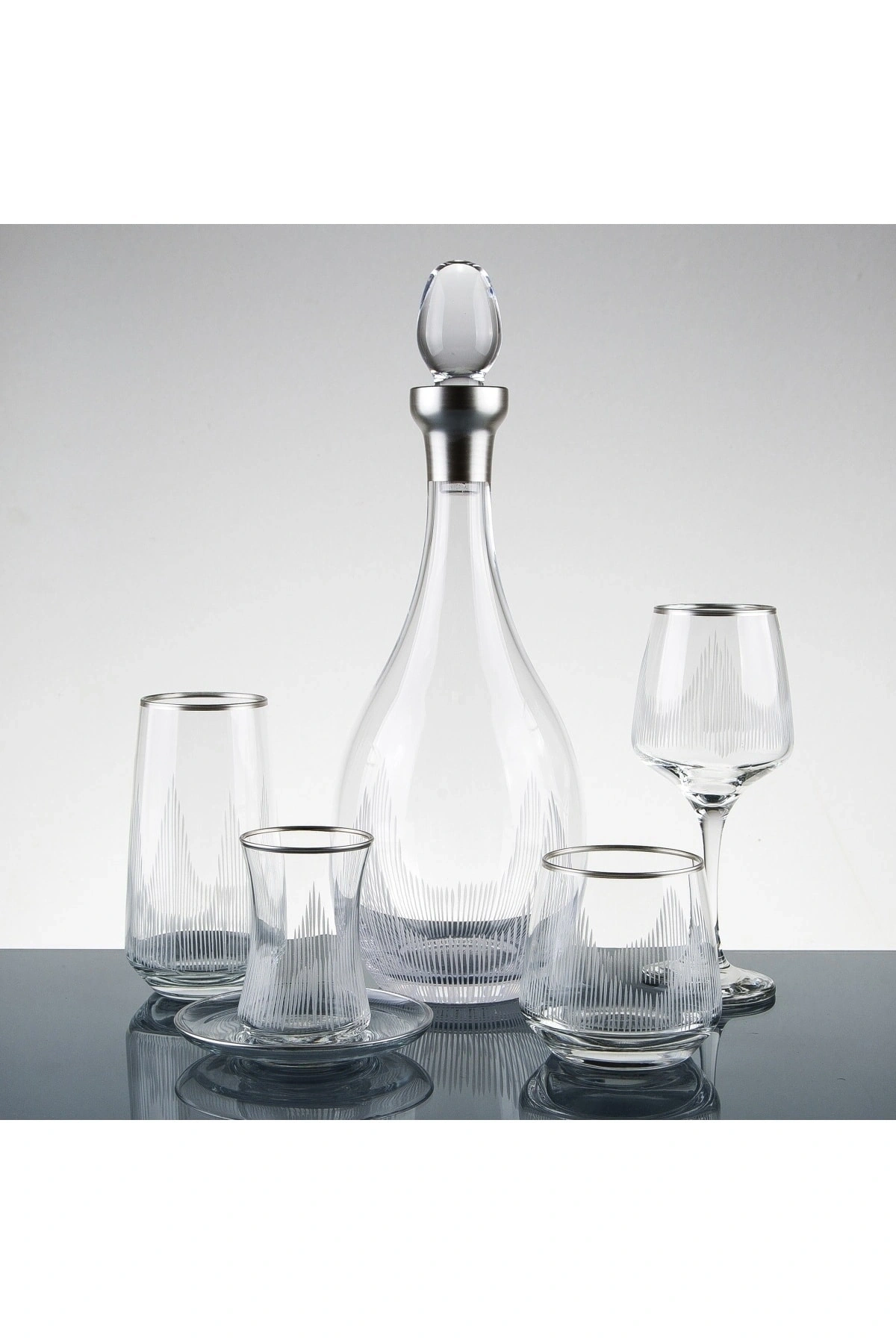 61 parça set halinde sunulan bu su bardağı takımı, 12 kişilik misafirlerinizi ağırlamak için idealdir; Alev gümüş rengiyle şık ve modern bir görünüm sunan bu bardaklar, sofralarınıza zarif bir dokunuş katar; Yüksek kaliteli cam malzemesi sayesinde uzun ömürlü kullanım ve dayanıklılık sağlar; Her bir bardak, el dekor kesim detaylarıyla estetik bir görünüm kazanır ve sofralarınıza sofistike bir hava katar;