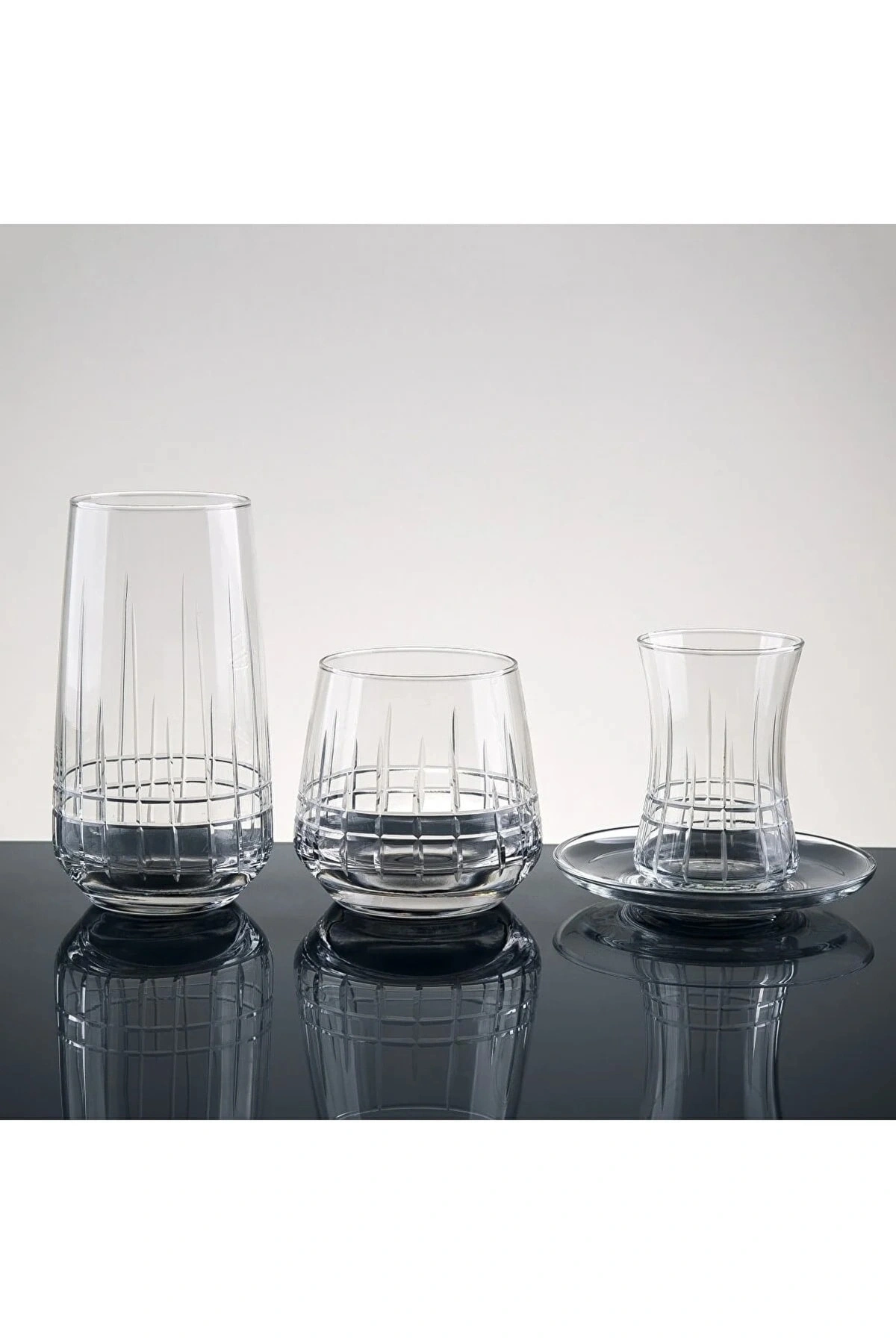 61 parça 12 kişilik ekose desenli cam su takımı, sofralarınıza şıklık ve estetik bir dokunuş katıyor;; Her bir bardak, dayanıklı cam malzemesiyle uzun süreli kullanım için idealdir;; Meşrubatlarınızı keyifle yudumlayabileceğiniz bu bardaklar, sofralarınıza modern bir hava getiriyor;;