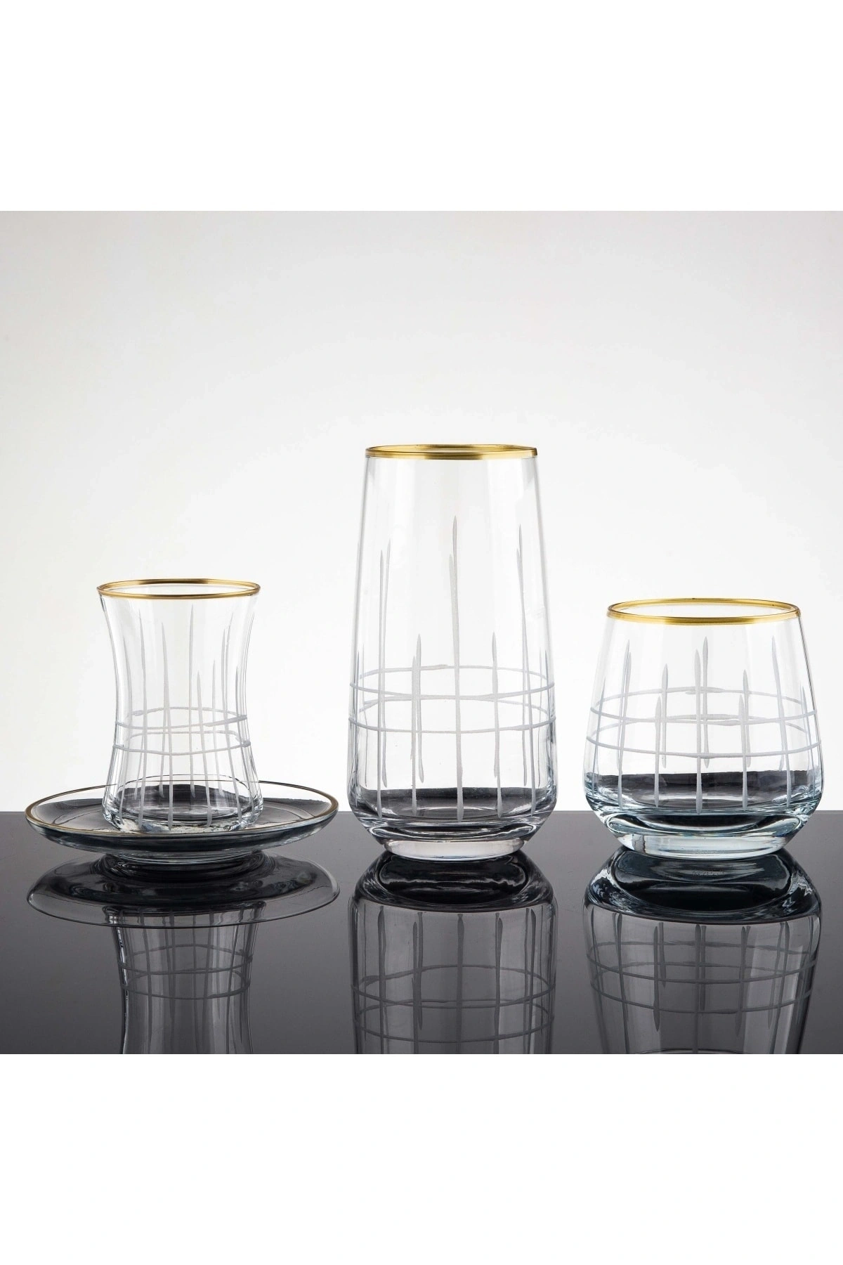 61 parça 12 kişilik ekose gold el dekor kesme cam su takımı, şık ve zarif tasarımıyla sofralarınıza modern bir dokunuş katıyor; Yüksek kaliteli cam malzemesi sayesinde uzun ömürlü kullanım sunar ve dayanıklılığı ile ön plana çıkar; Su bardağı olarak tasarlanmış bu ürün, günlük kullanım için idealdir ve her türlü içeceğinizi keyifle yudumlayabileceğiniz bir seçenektir; Ekose deseniyle klasik ve zamansız bir görünüm sergileyen bu takım, her türlü sofra düzenine kolayca uyum sağlar;