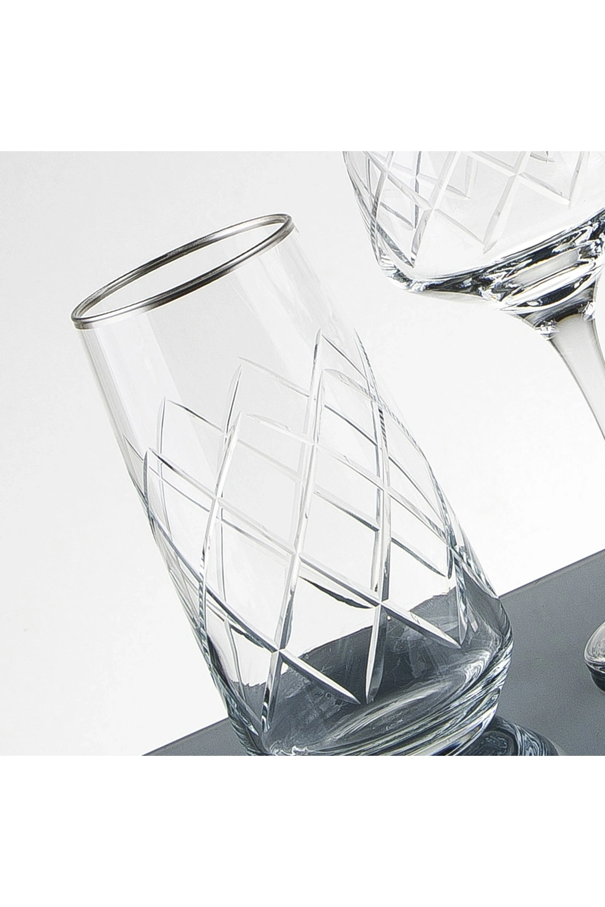 61 parça set halinde sunulan bu gümüş su takımı, 12 kişilik misafirlerinizi ağırlamak için idealdir; Yüksek kaliteli cam materyalden üretilmiş olup, dayanıklılığı ve şık görünümü ile dikkat çeker; Su bardağı tasarımı, her türlü içeceğinizi rahatça yudumlayabileceğiniz ergonomik bir kullanım sunar;