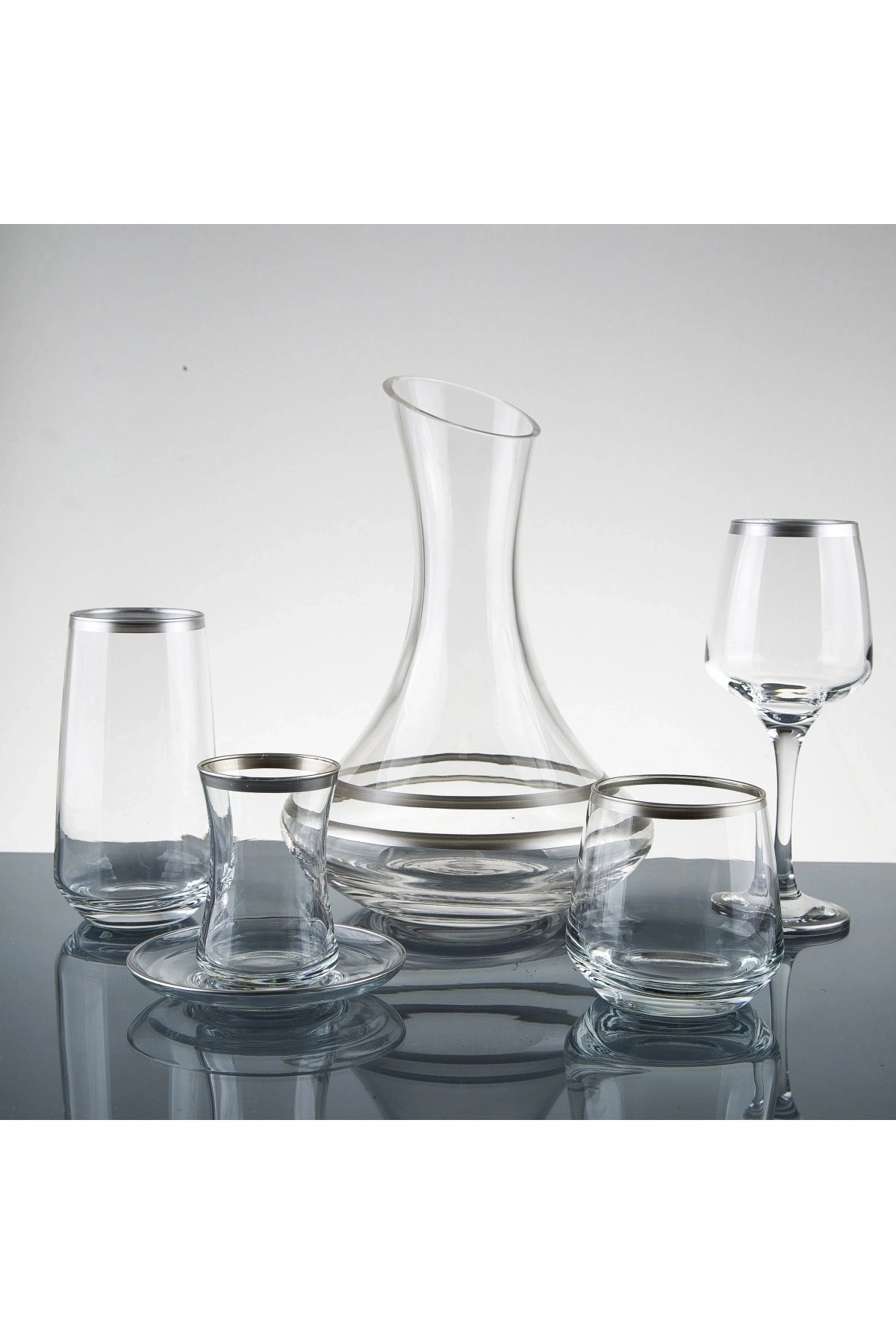 12 kişilik geniş kapasiteyle, büyük davetlerinizde ve özel günlerinizde rahatlıkla kullanabileceğiniz 61 parça gümüş su takımı; Şeffaf cam materyali sayesinde içeceklerinizi estetik bir şekilde sunar ve sofralarınıza zarif bir dokunuş katar; Bulaşık makinesinde kolayca yıkanabilir olması, temizliği pratik ve zahmetsiz hale getirir;