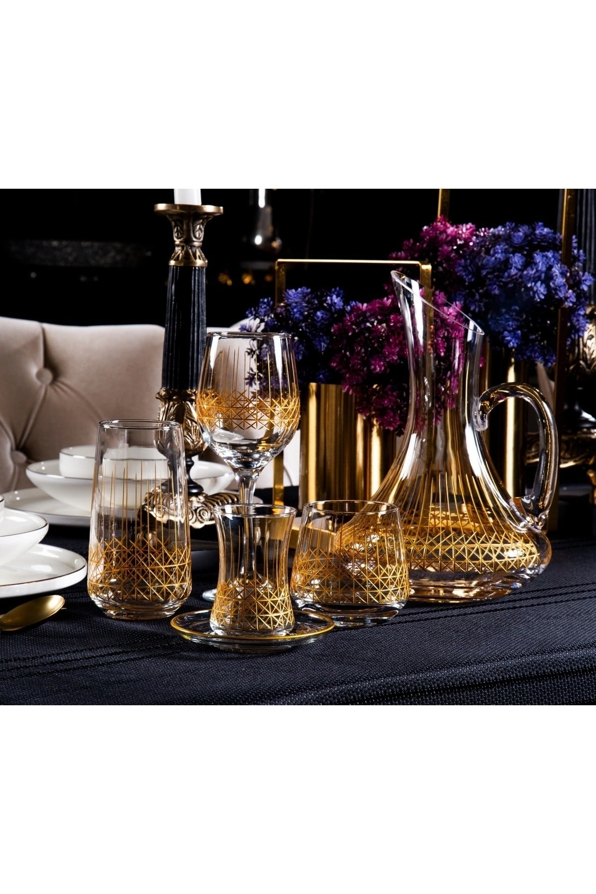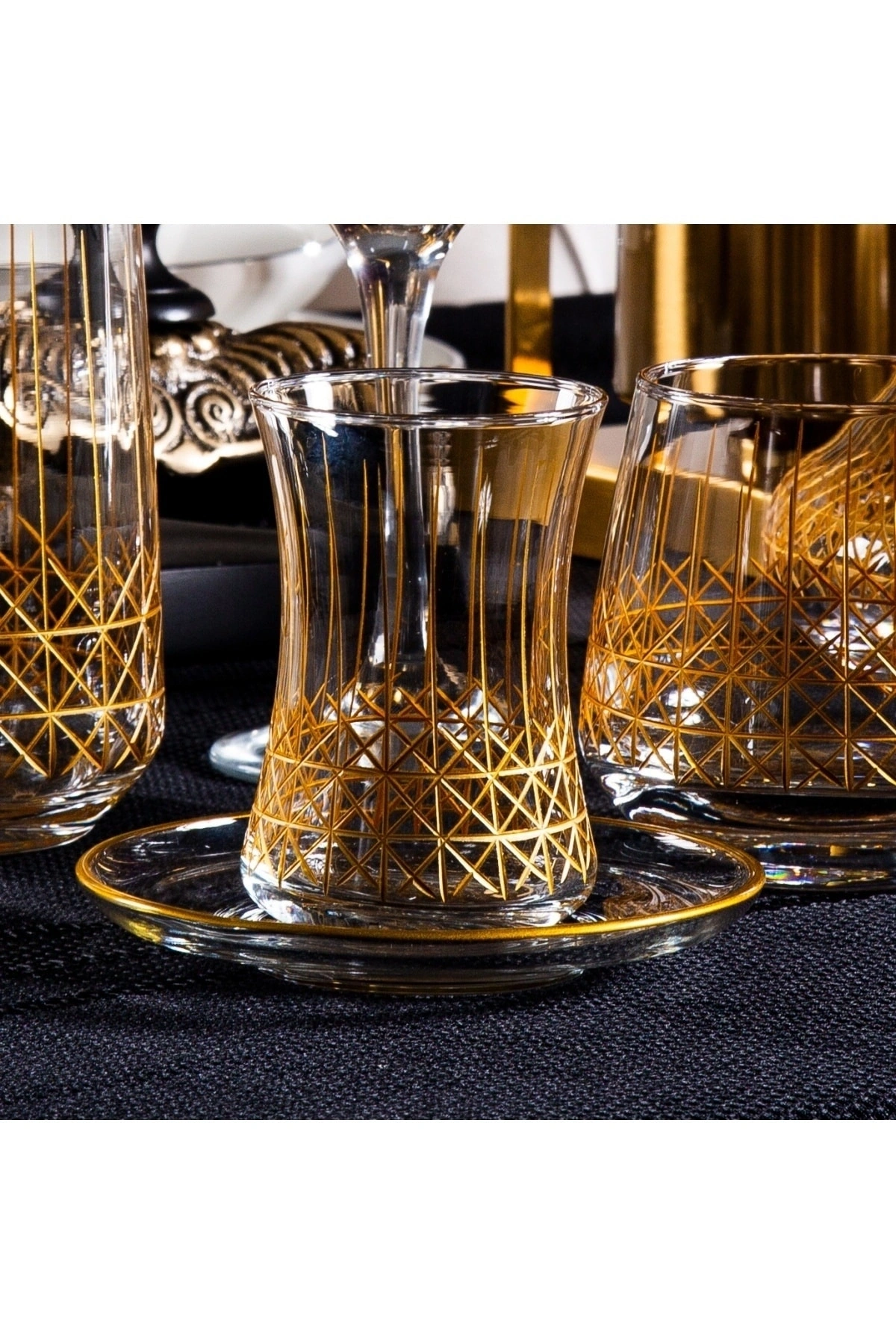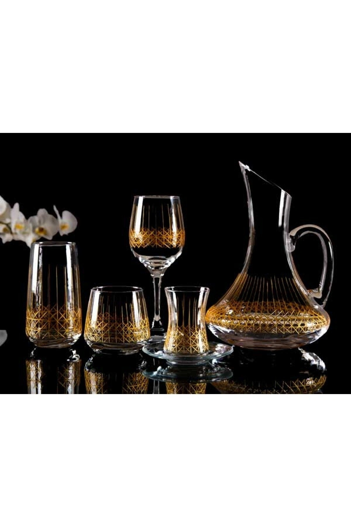 12 kişilik geniş kapasiteye sahip, her türlü davet ve toplantınızda rahatlıkla kullanabileceğiniz 61 parça hasır el dekor kesme gold cam su takımı; Şık ve modern tasarımıyla dikkat çeken bu bardaklar, sofralarınıza zarif bir dokunuş katıyor; Yüksek kaliteli cam malzemesi sayesinde uzun ömürlü kullanım sunar ve dayanıklılığı ile ön plana çıkar; Hasır el dekor kesme detayları, her bir bardağa benzersiz bir estetik kazandırarak sofralarınızda göz alıcı bir görünüm sağlar;