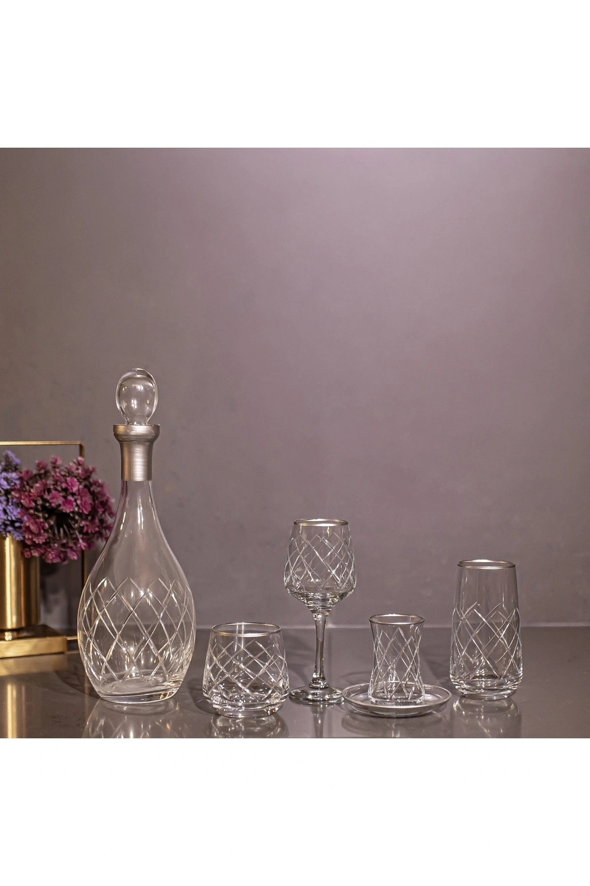 61 parça set halinde sunulan bu su takımı, 12 kişilik geniş kapasitesiyle misafirlerinizi ağırlamak için idealdir; Gümüş renkli kristal kesim cam malzemesi, şık ve modern bir görünüm sunarak sofra düzeninize zarif bir dokunuş katar; Kare formdaki bardaklar, hem estetik hem de fonksiyonel kullanım için tasarlanmıştır; suyunuzun daha kolay dökülmesini sağlar; Cam malzemesi sayesinde dayanıklılık ve uzun ömürlü kullanım vaat ederken, kolay temizlenebilir yapısıyla pratik bir deneyim sunar;