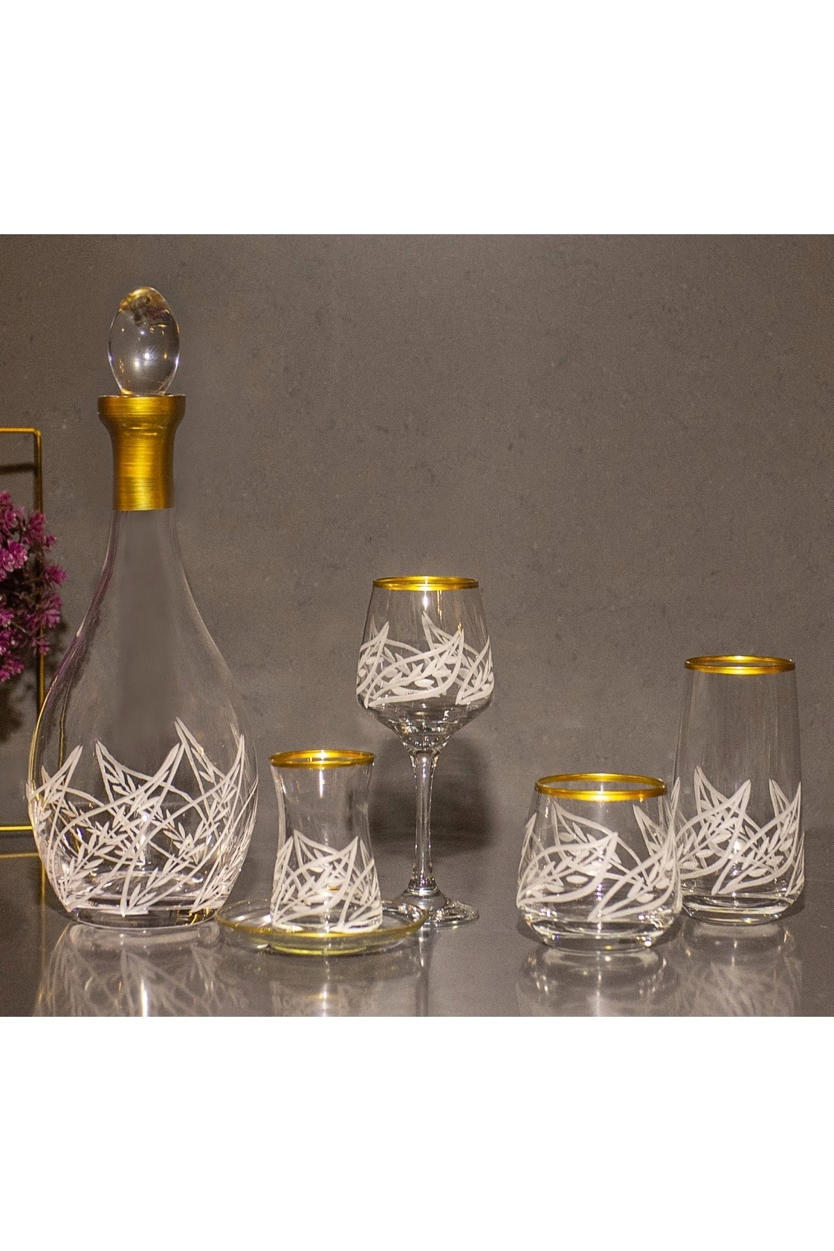 61 Parça 12 Kişilik Yaprak El Dekor Kesme Gold Cam Su Bardak Takımı,Meşrubat Bardağı Seti KARGO ESNASINDA OLUŞABİLECEK KIRIKLAR GARANTİMİZ ALTINDADIR 12 KADEH 295cc 12 UZUN BARDAK 480cc 12 KISA MEŞRUBAT 345cc 12 ÇAY BARDAK 155cc 12 ÇAY TABAK KARAF 1,5lt Şıklığı ve zarafeti bir araya getiren kristal kesme su takımımız, sofralarınıza lüks bir dokunuş katacak.; Her detayında el işçiliği bulunan kristal kesme su takımımız, özel anlarınızı daha da unutulmaz kılacak.; Her zaman parlayan ve dikkat çeken kristal kesme su takımımız, sofralarınızın baş tacı olacak