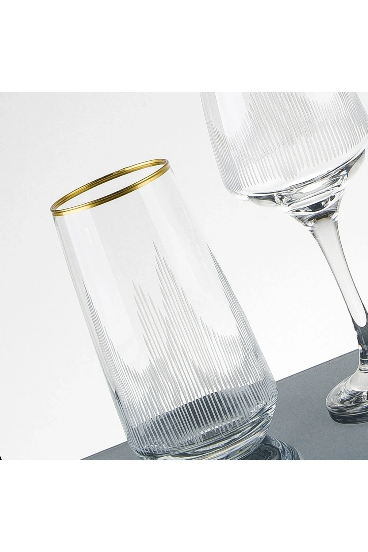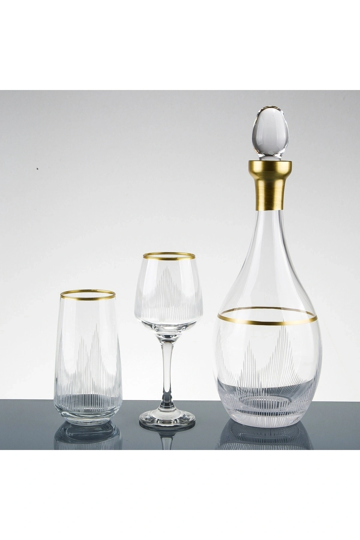 - Şık ve zarif tasarımıyla dikkat çeken Alev gold el dekor kesme cam su takımı, sofralarınıza modern bir dokunuş katıyor; - 25 parçadan oluşan bu set, 12 kişilik misafirlerinizi ağırlamak için idealdir; - Yüksek kaliteli cam malzemesi sayesinde uzun ömürlü kullanım sunar ve dayanıklılığı ile ön plana çıkar; - Su bardağı olarak tasarlanmış bu ürün, hem sıcak hem de soğuk içeceklerinizi keyifle yudumlayabileceğiniz ideal bir seçenektir;