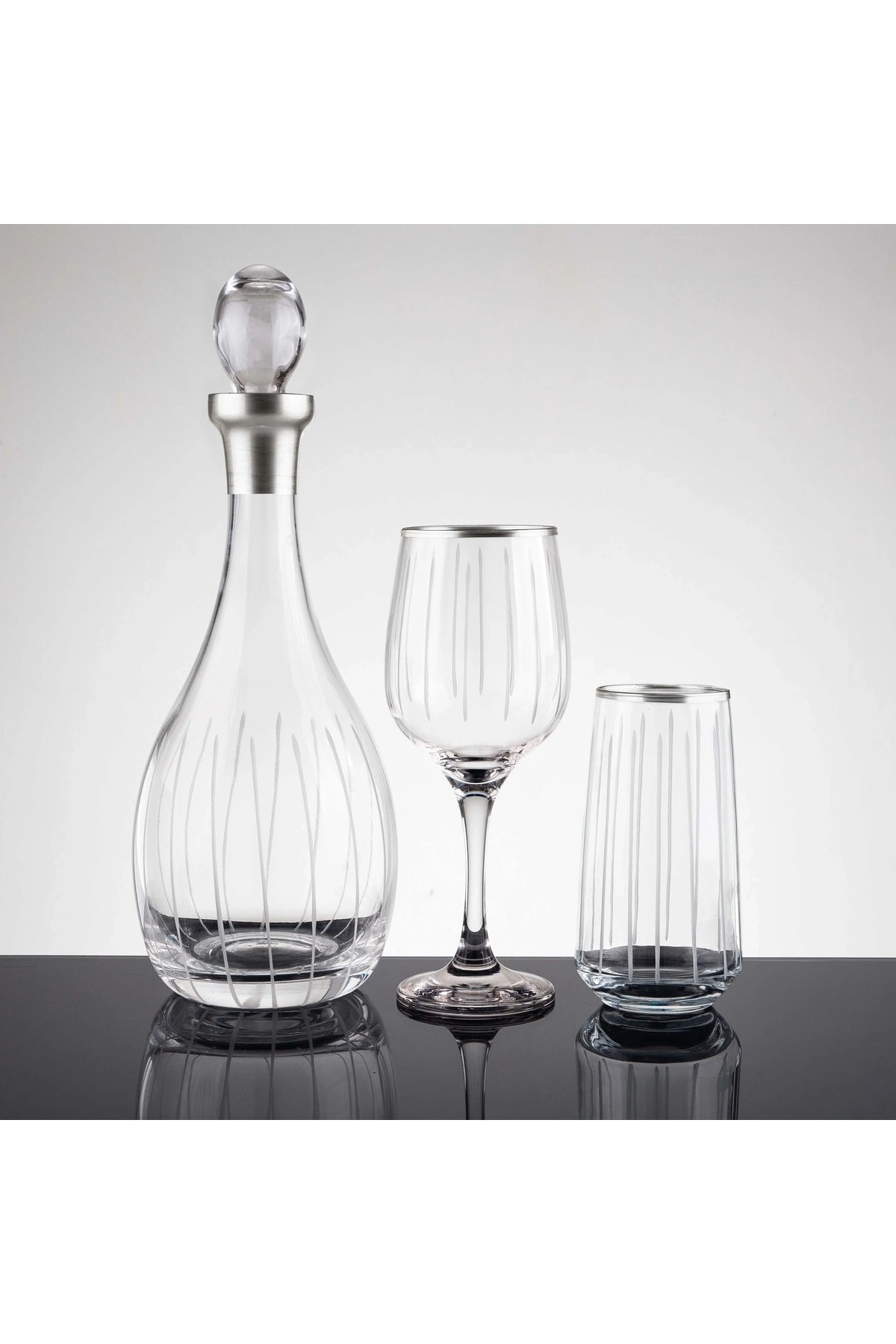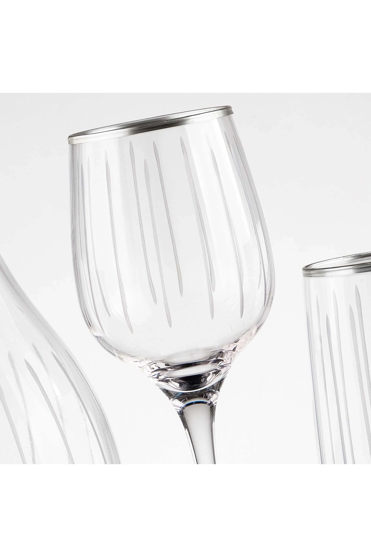 Şık ve zarif tasarımıyla dikkat çeken cam materyalden üretilmiş, her türlü sofra düzenine uyum sağlayacak 25 parça su bardağı seti; 12 kişilik geniş kapasitesiyle misafirlerinize aynı anda servis yapabilme imkanı sunar; Gümüş renkli dekoratif çubukları ile sofralarınıza modern bir dokunuş katar ve görsel bir şıklık sağlar; Dayanıklı cam malzemesi sayesinde uzun süreli kullanım için idealdir ve kolay temizlenebilir özelliğiyle pratik bir kullanım sunar;