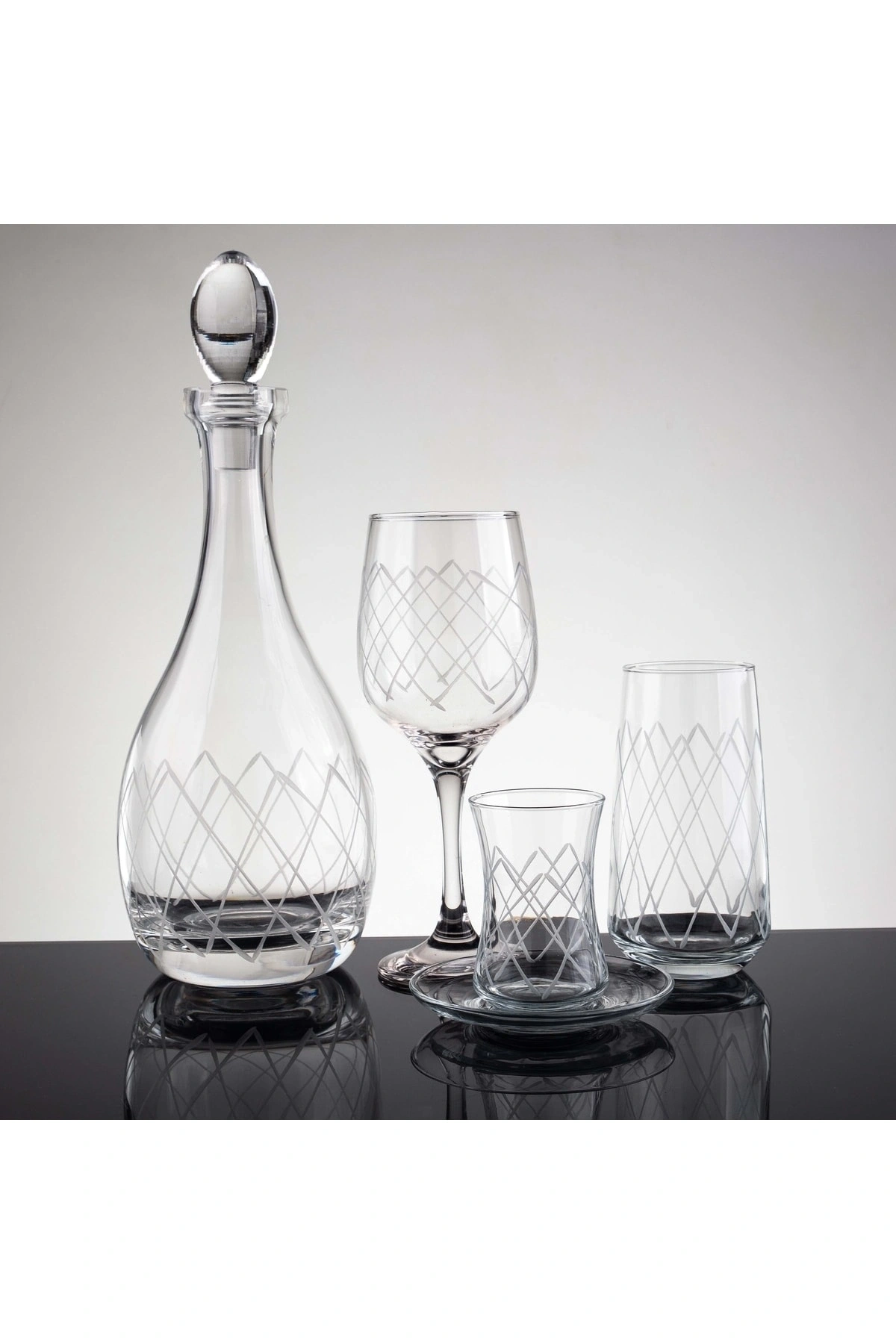 12 kişilik geniş kapasiteye sahip, her türlü davet ve toplantınızda rahatlıkla kullanabileceğiniz kare el dekor kesme cam su takımı; Şeffaf cam malzemesi ile içeceklerinizi estetik bir şekilde sunar ve sofralarınıza modern bir dokunuş katar; El dekor kesim detayları ile göz alıcı bir görünüm sağlar, her türlü sofra düzenine zarif bir uyum sağlar; Dayanıklı cam yapısı sayesinde uzun süreli kullanım için idealdir; sık kullanımlarda bile formunu korur;